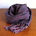 埼玉・川越の伝統織物、川越唐桟をつかったストールです。濃い紺地に、細い赤と白のストライプ。